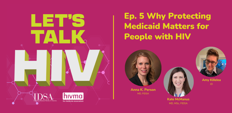 Anna Pearson: [00:00:11] Hello everyone! We are excited to welcome you to the next installment of HIV Medicine Association's podcast series, Let's Talk HIV. Why Medicaid matters. I'm your host, doctor Anna Pearson, an infectious disease doctor at Vanderbilt University Medical Center and HIV EMA vice chair. And this podcast series really serves to build off of four episodes that you may recall were recorded last year and will further delve into the emerging threats to the Medicaid program and how infectious diseases and HIV care professionals can really support Medicaid as a critical safety net for people with HIV.